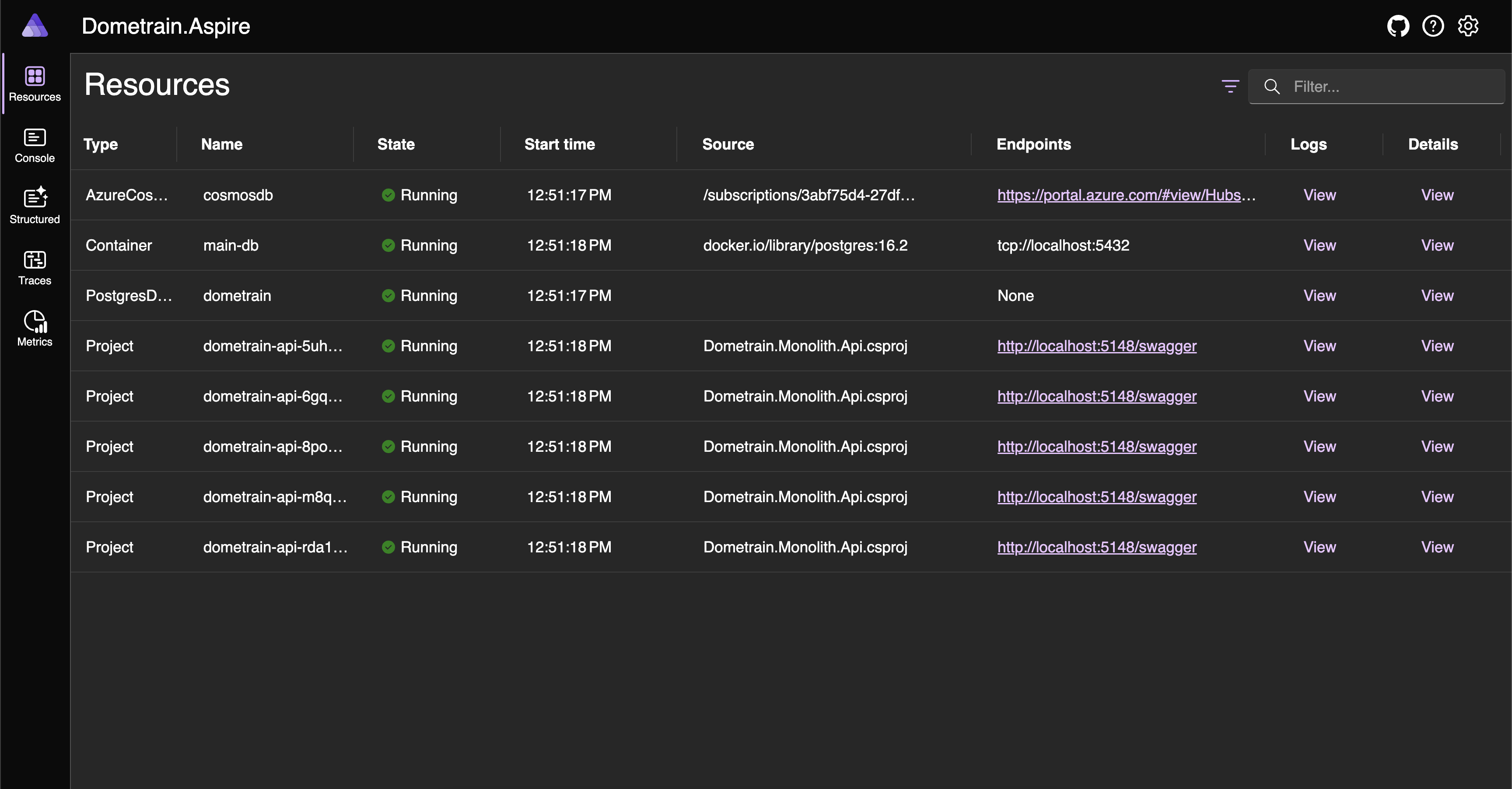 builder.AddProject<Projects.Dometrain_Monolith_Api>("dometrain-api")